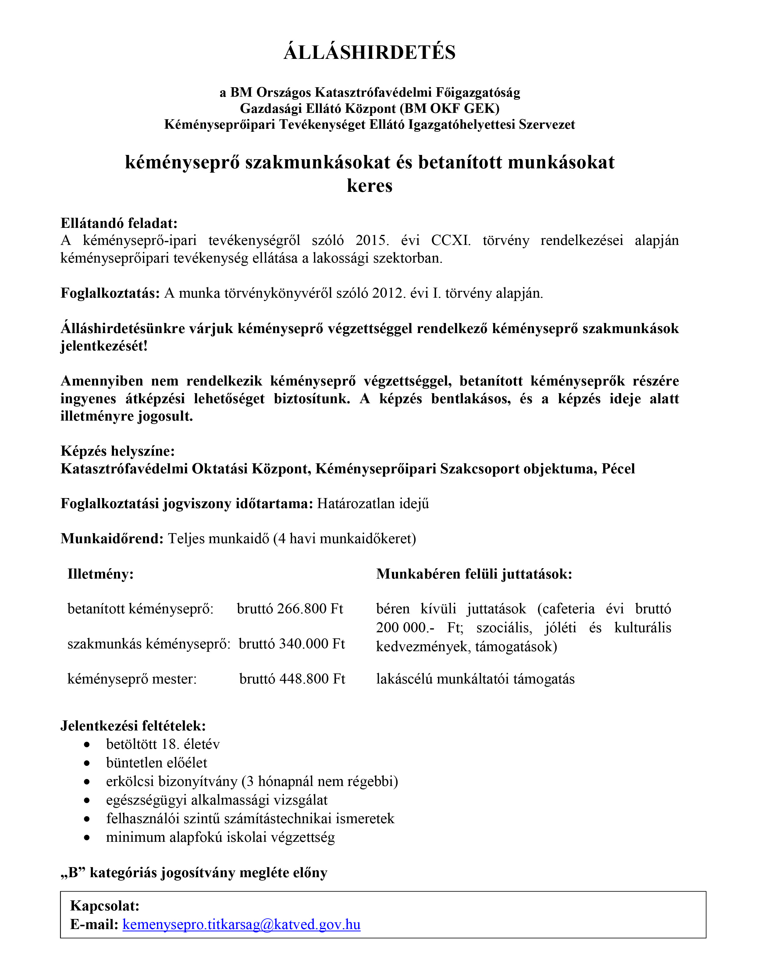 Folytatódik a BM Országos Katasztrófavédelmi Főigazgatóság Gazdasági Ellátó Központ kéményseprő hivatást népszerűsítő munkaerős felvételi kampánya.