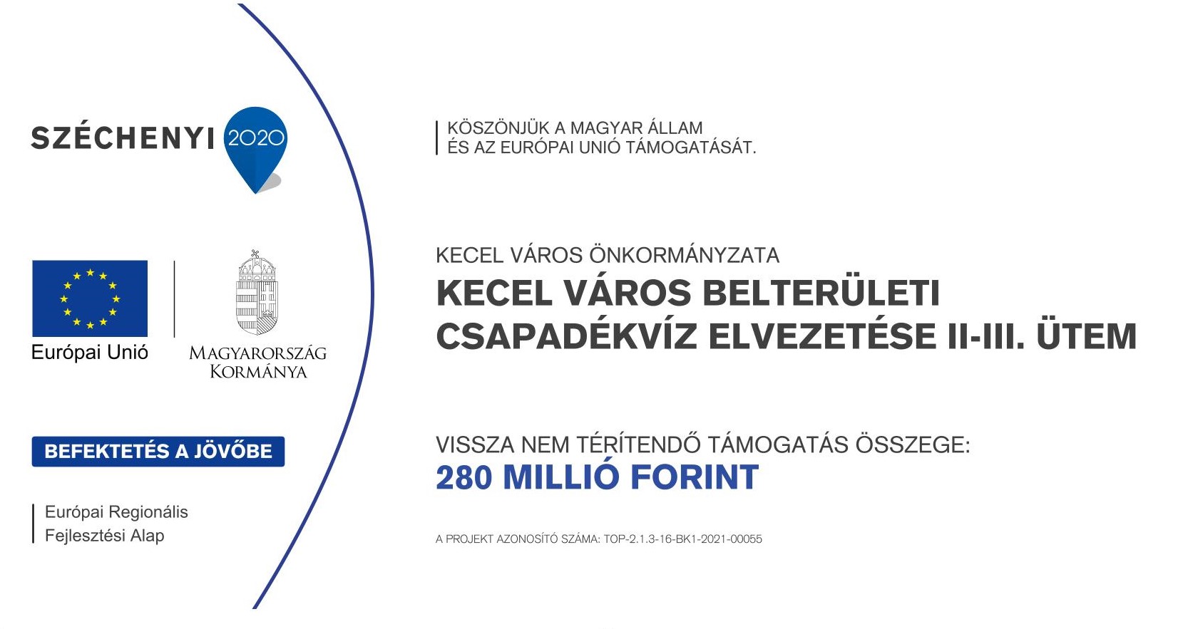 Projektazonosító: TOP-2.1.3-16-BK1-2021-00055Kedvezményezett neve: Kecel Város ÖnkormányzataProjekt címe: Kecel város belterületi csapadékvíz elvezetése II-III. ütemA szerződött támogatás összege: 280.0...